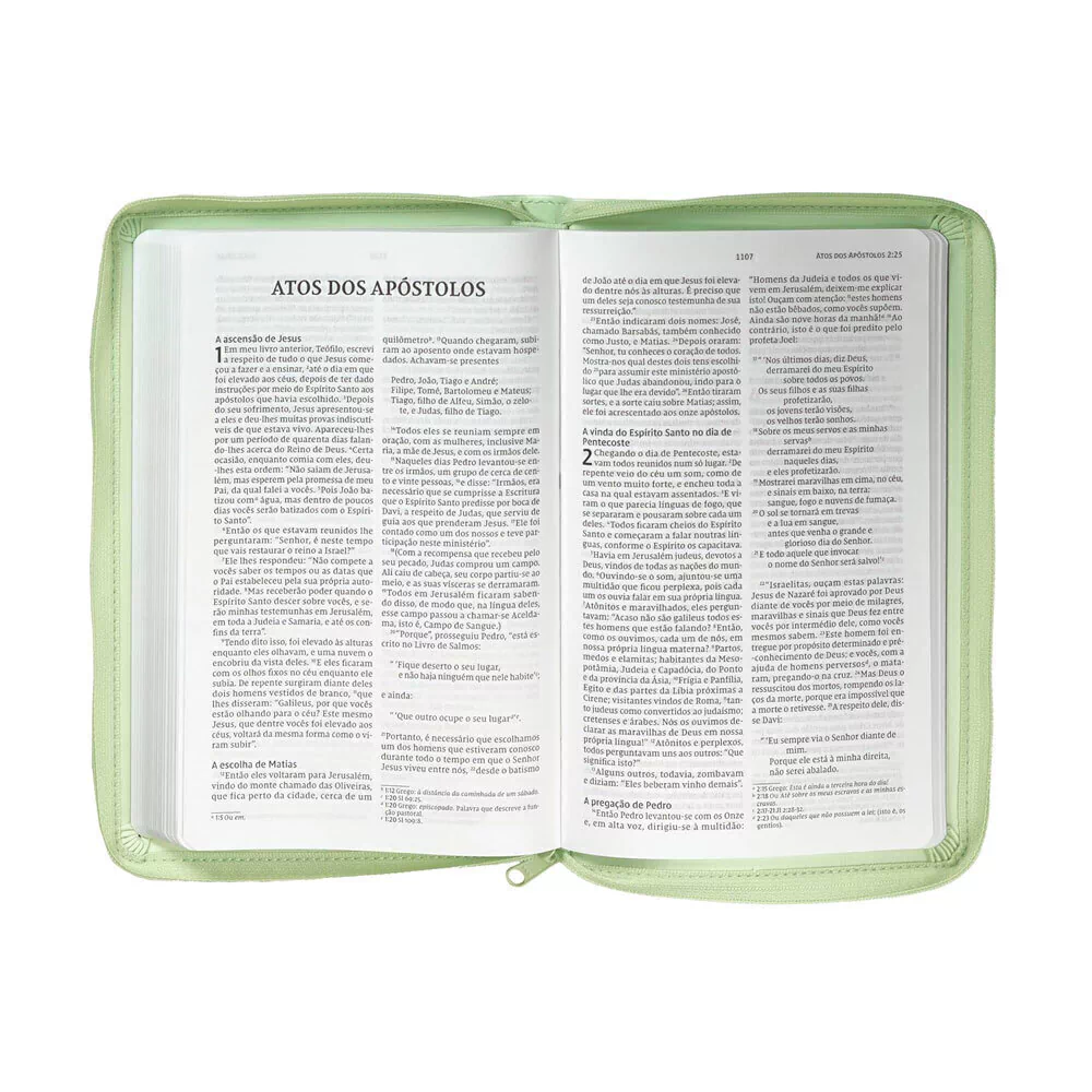 Conta com uma capa em couro soft verde, desenho em baixo relevo e um toque especial em hot stamp. Seu grande diferencial é o fechamento em zíper na cor verde, que traz conforto e praticidade para levá-la a qualquer lugar, seja na igreja ou para carregar na bolsa no dia a dia. Além disso, seu texto está na versão NVI (Nova Versão Internacional), que se baseia na precisão, clareza e uma abordagem contemporânea e, ao mesmo, fiel ao texto original. Nela, você encontrará ainda a fonte Leitura Perfeita.