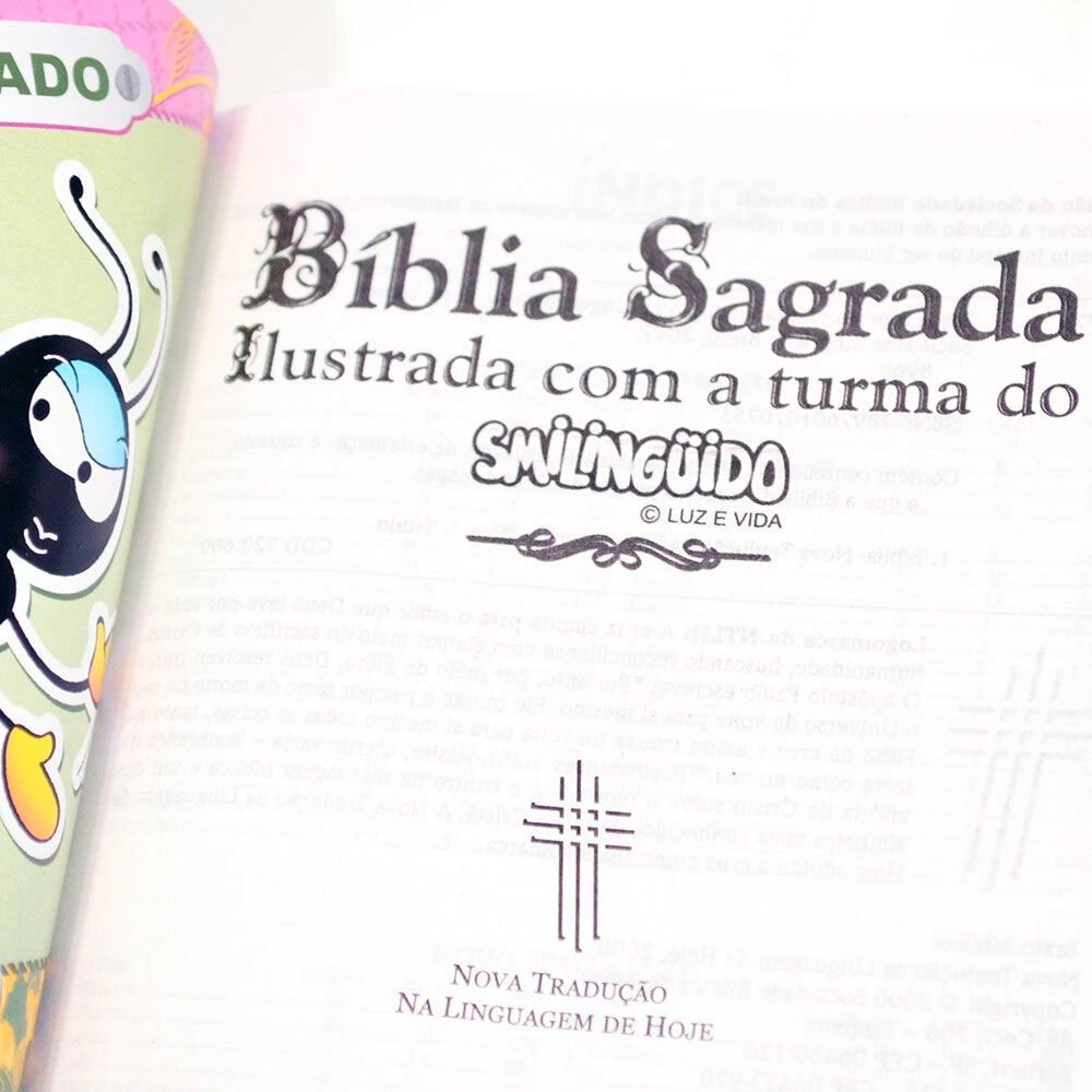 Esta é uma edição da Bíblia Sagrada com a turma Smilinguido. Na Nova Tradução na Linguagem de Hoje.
