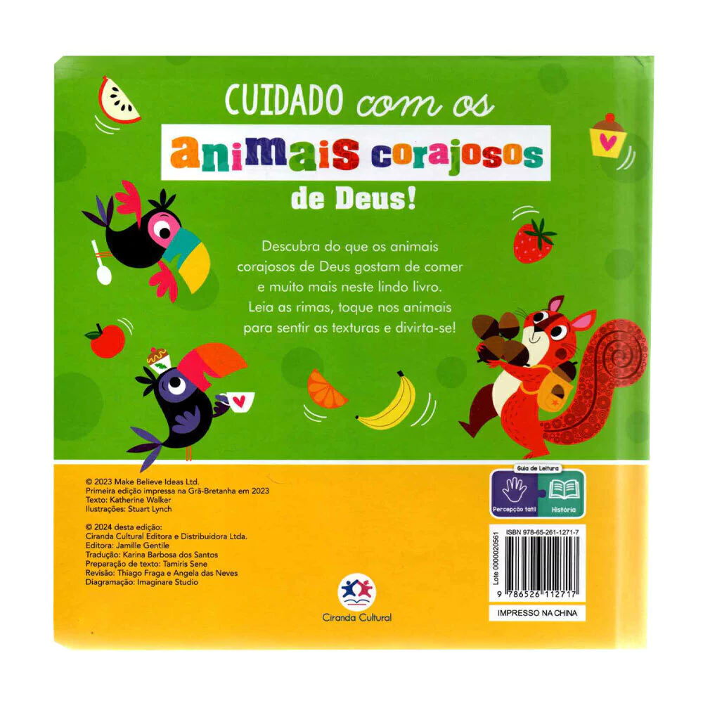 Descubra o que os animais corajosos de Deus gostam de comer e muito mais neste lindo livro. Leia as rimas, toque nos animais para sentir as texturas e divirta-se!