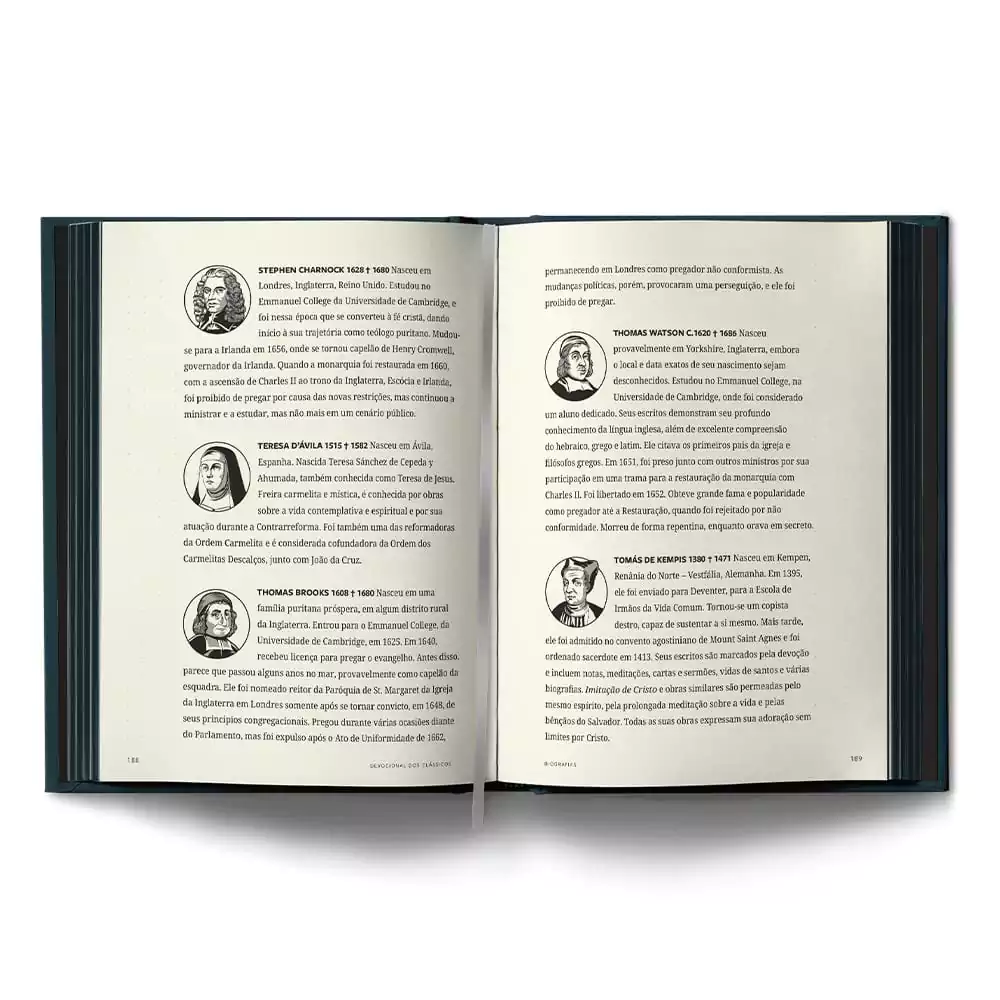 O Devocional dos clássicos torna tudo isso possível. A obra te coloca em contato com Deus por meio das ideias e das experiências de grandes pensadores cristãos, como C. S. Lewis, Teresa D’Ávila, Madame Guyon, John Bunyan, Richard Baxter, Charles Spurgeon, Jonathan Edwards, Agostinho, Inácio de Loyola, Jessie Penn-Lewis e John Knox.