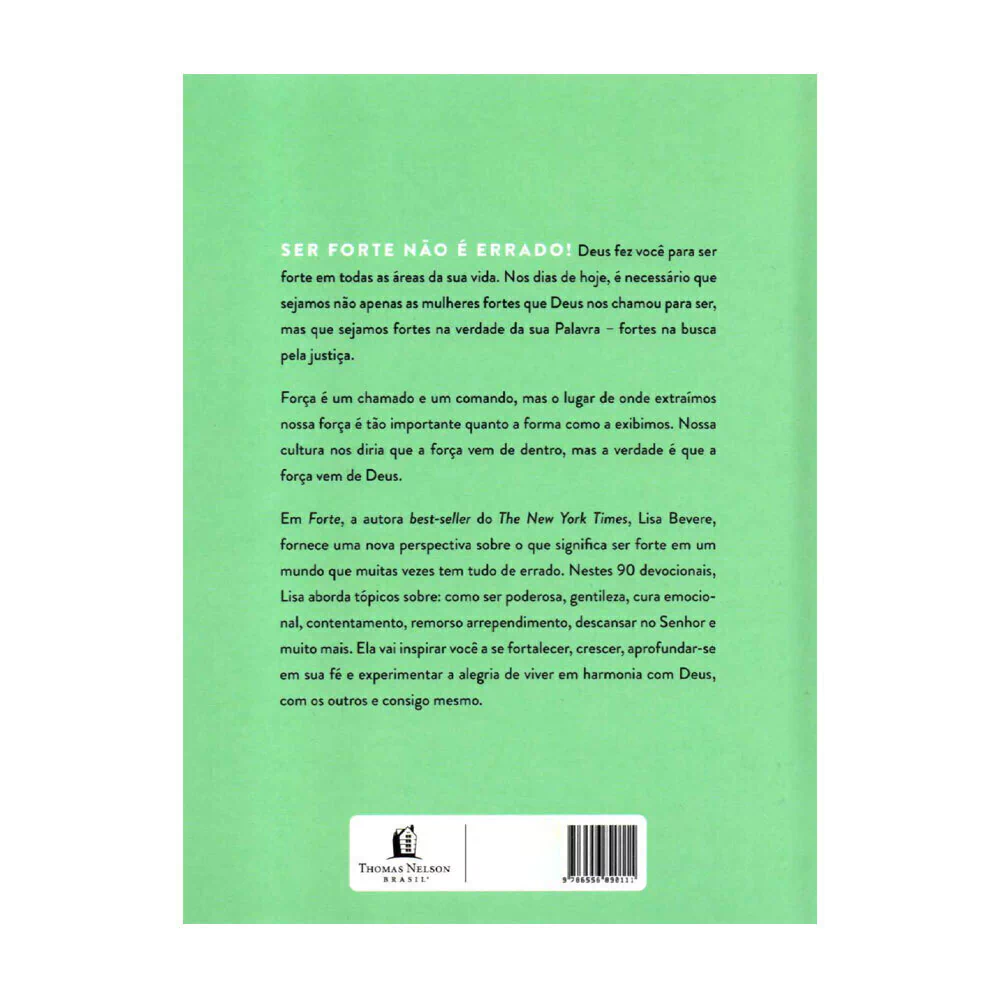 Deus fez você para ser forte em todas as áreas da sua vida. Nos dias de hoje, é necessário que sejamos não apenas as mulheres fortes que Deus nos chamou para ser, mas que sejamos fortes na verdade da sua Palavra – fortes na busca pela justiça. Força é um chamado e um comando, mas o lugar de onde extraímos nossa força é tão importante quanto a forma como a exibimos. Nossa cultura nos diria que a força vem de dentro, mas a verdade é que a força vem de Deus. Em Forte, a autora best-seller do New York Times, Lisa Bevere, fornece uma nova perspectiva sobre o que significa ser forte em um mundo que muitas vezes tem tudo de errado.