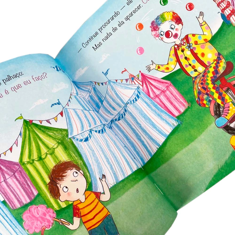 Quando o menino acorda de mau-humor, ele procura desesperadamente seu sorriso em todo lugar − do circo à confeitaria e até nos próprios bolsos −, mas não consegue encontrar.
