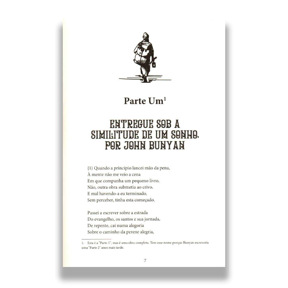 Neste livro, Bunyan narra a viagem de Cristão, um peregrino espiritualmente abatido que viaja rumo a Cidade Celestial.O Peregrino inicia com um poema no qual descreve os motivos para o livro e a razão de usar formas alegóricas (semelhante aos autos do teatro medieval) para contar a aventura do viajante que se encontra com personagens de carne e osso, mas que possuem nomes simbólicos que remetem ao evangelho de Jesus Cristo, como Evangelista, Adulação, Malicia, Apoliom e Vigilância. Um clássico cristão que ainda hoje tem um importante papel como guia sobre a perseverança em meio a dificuldades.