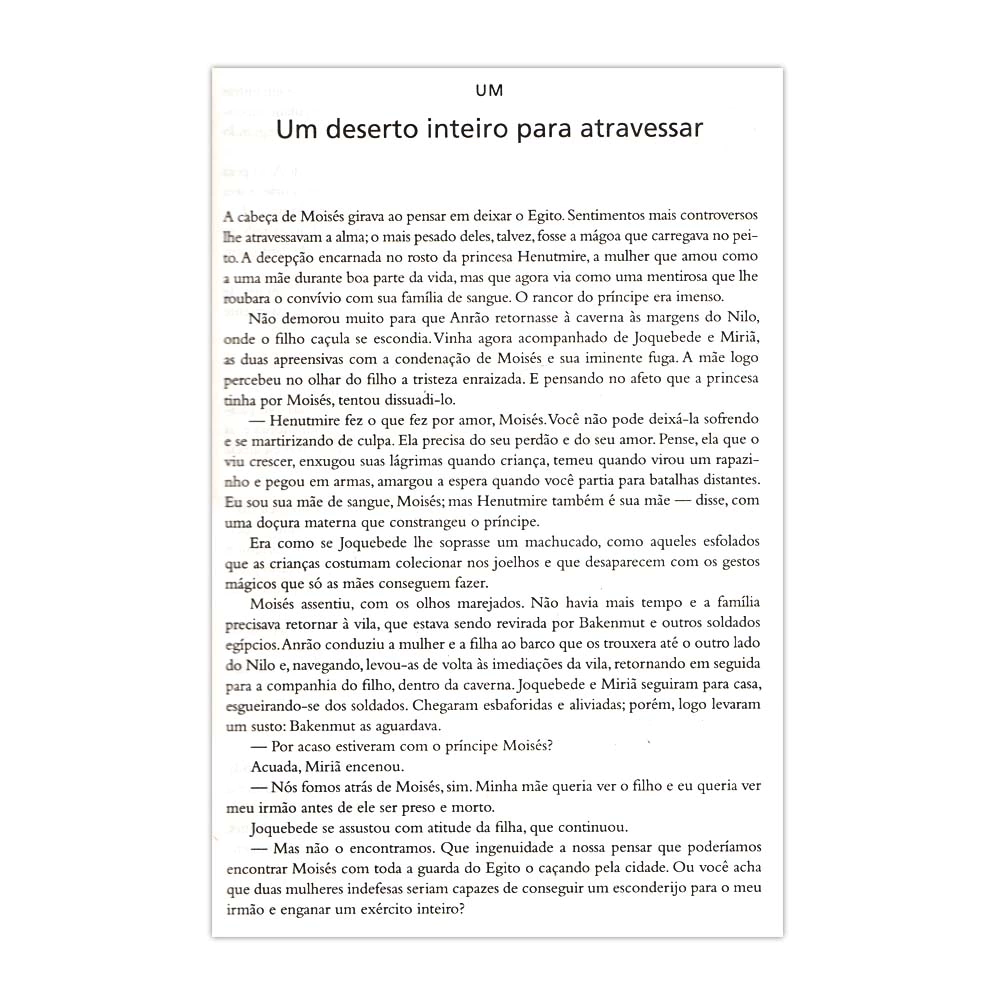 A história romanceada da saga do povo de Deus rumo à Terra Prometida. O pequeno bebê encontrado no rio tornou-se um poderoso soldado, um líder influente e de prestígio junto ao Império Egípcio. Essa foi a trajetória de Moisés em Os Dez Mandamentos — volume 1, o qual encerra-se com a fuga do protagonista para o deserto, após a dura perseguição de seu avô adotivo, SetiI.