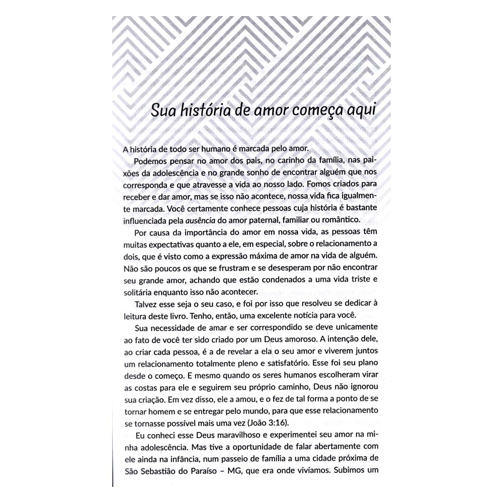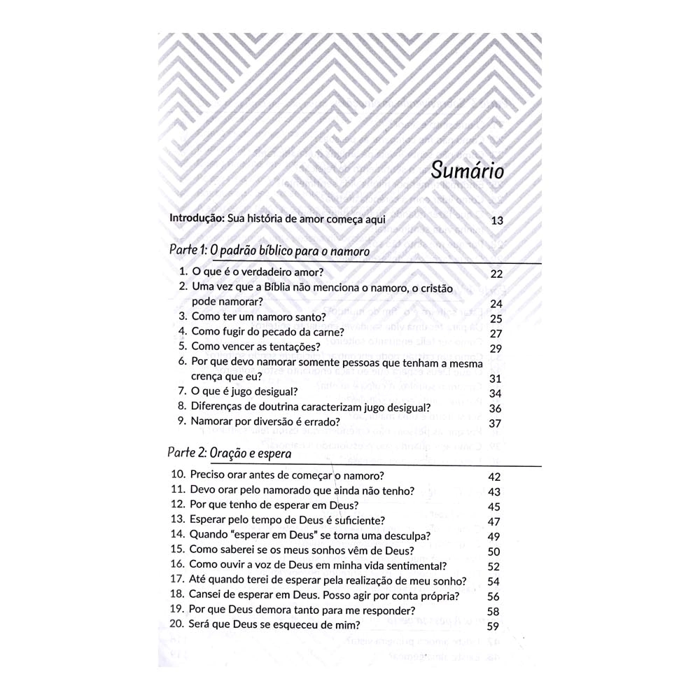 São 100 perguntas reunidas sobre tudo que envolve o universo amoroso, incluindo temas como bagagem emocional, escolhas, sexualidade e espiritualidade. Com a vasta experiência adquirida como consultor de relacionamentos e líder de jovens, o pastor Antônio Júnior responde a tudo que você sempre quis saber sobre namoro e ajuda o leitor a acalmar o coração e confiar em Deus.