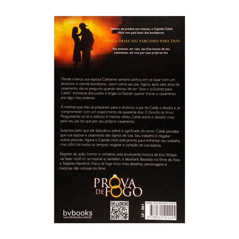 Este livro foi inspirado no filme “Prova de fogo” que foi um sucesso nas telas e, diante disso, Eric Wilson trouxe o mesmo em literatura. O livro irá contar a história de Catherine que tinha um sonho em se casar com um bombeiro, profissão também exercida por seu pai, depois de um tempo casada com Caleb, a mesma começa a se perguntar se foi ou é de fato uma boa esposa. O relacionamento deles era agora permeado por brigas, desentendimentos e discussões, isso num casamento sete anos de história. Essa situação acabou desencadeando com divórcio, entretanto o pai de Caleb fez uma proposta ao seu filho para que o mesmo se comprometesse em fazer uma experiência de quarenta dias com um livro: “O desafio de Amar” Caleb não tinha muita fé que a leitura de um livro poderia salvar seu casamento, no entanto mais para agradar o pai, aceita o desafio lançado.