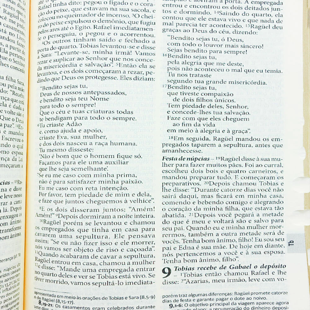 Sua capa de luxo confere elegância e durabilidade, tornando-a também uma excelente opção de presente em ocasiões religiosas como crisma, primeira comunhão, batismo ou casamento. Um verdadeiro tesouro espiritual para acompanhar a vida cristã no dia a dia.